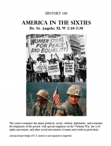 America in the Sixties,  Dr. St. Angelo; MW 2:10-3:30 p.m.