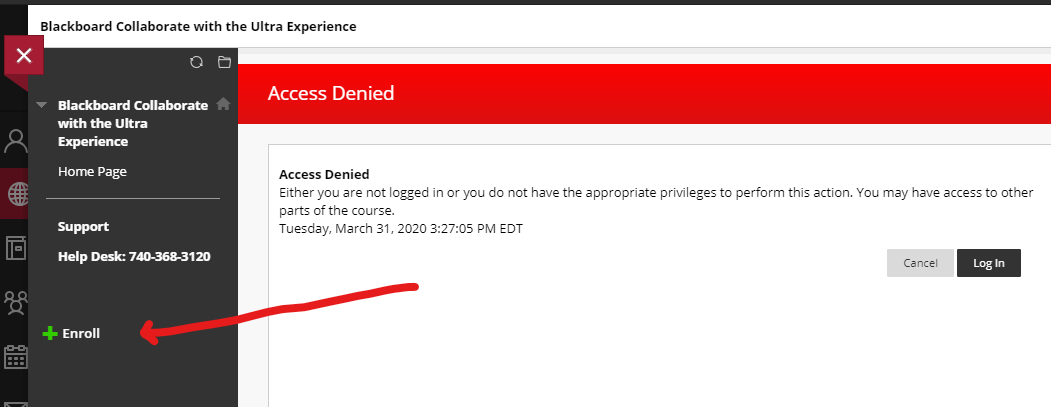 You’ll first need to log into OWU Blackboard at https://bb.owu.edu. Then, when you click the links below, the option to enroll in the course will appear on the left, as in the screenshot.