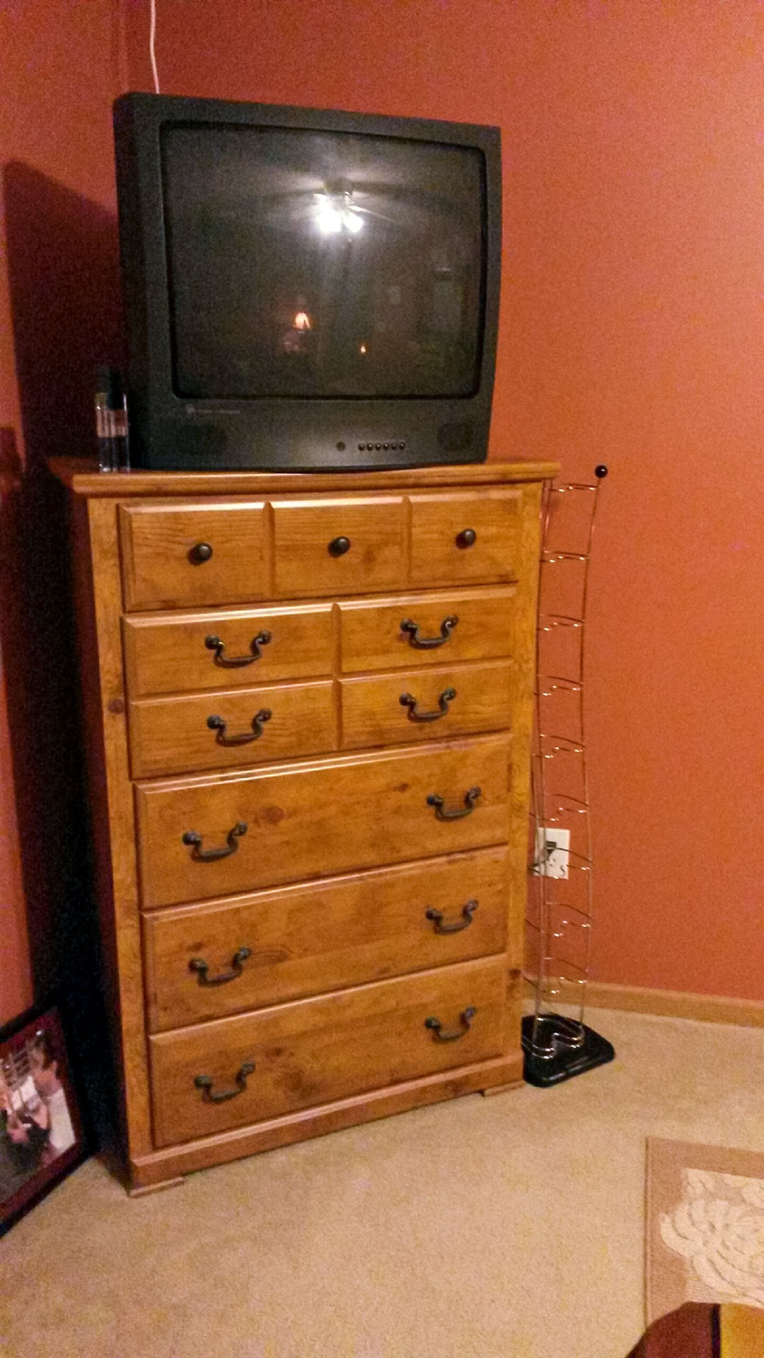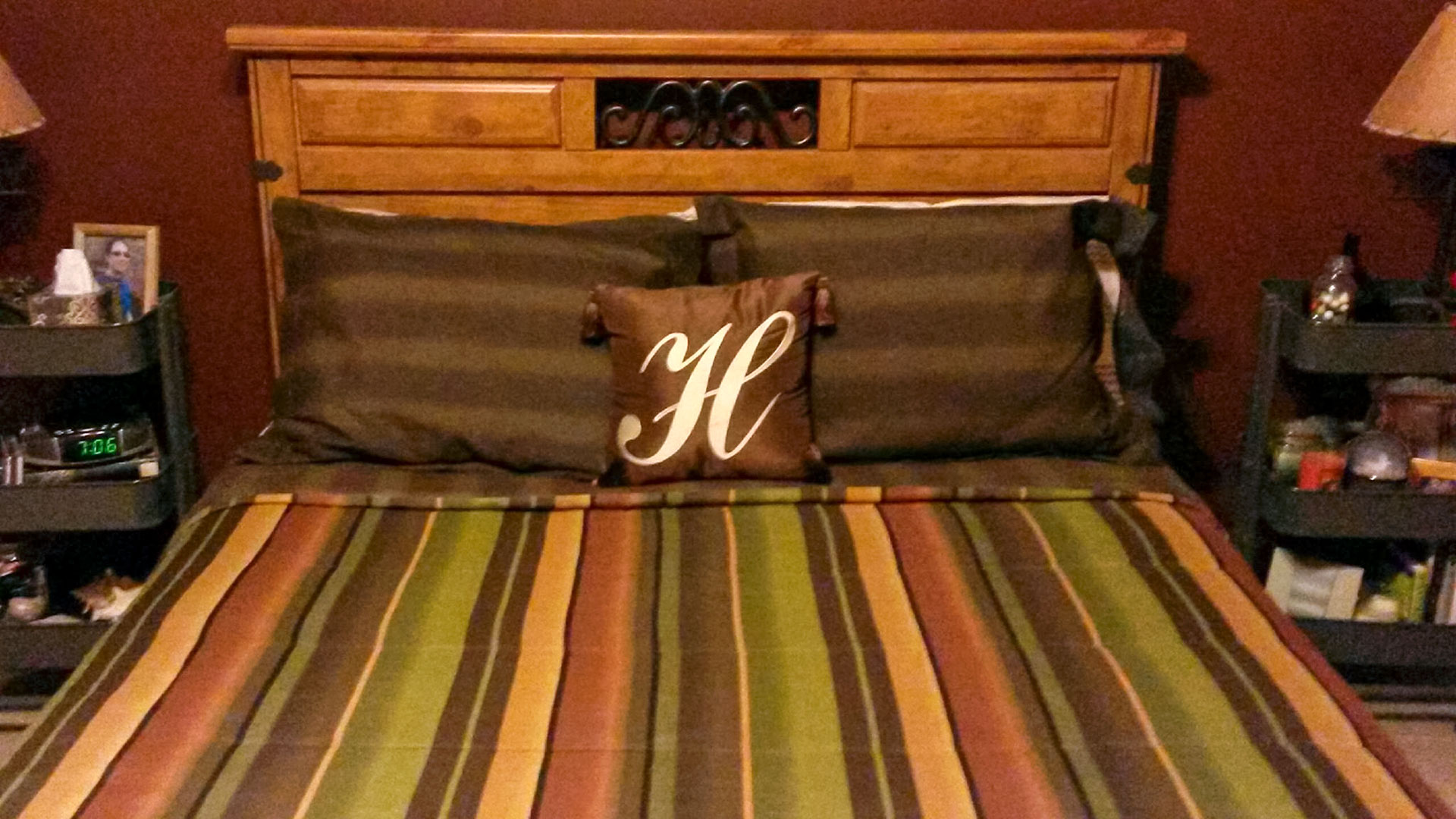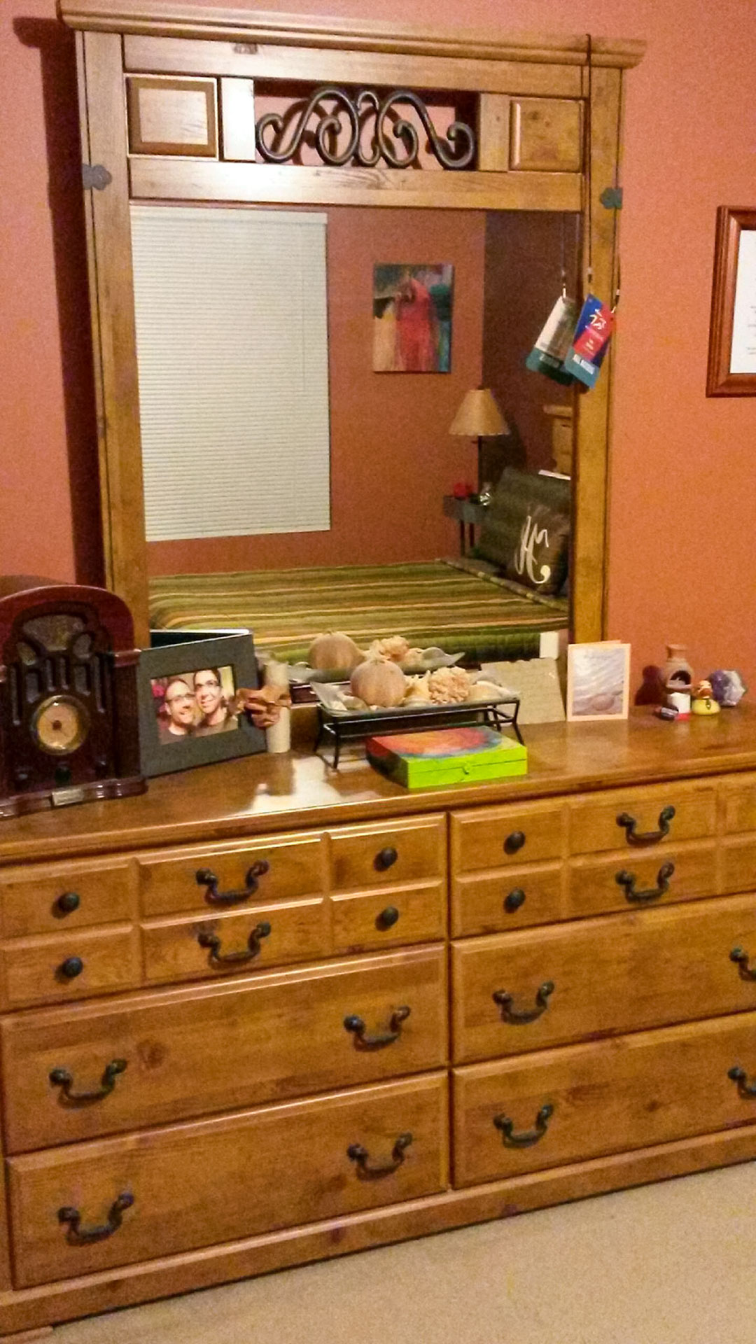 Bedroom suite for sale: Very clean and well-cared for, honey oak color with wrought iron-looking accents.