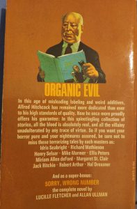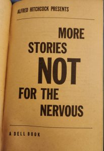 “Organic Evil.” These are two words that Alfred Hitchcock uses to describe the tone of the stories that make up the collection titled Alfred Hitchcock Presents: More Stories NOT for the Nervous. Hitchcock and author Robert Arthur worked together to gather many thriller short stories that they thought were amazing and put them all together in this collection.