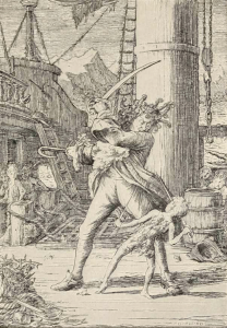 Perhaps most famously, Johnson partly inspired Robert Stevenson’s 1883 novel Treasure Island–minor character Israel Hands was even named after a pirate profiled in the first volume of the mysterious work. Katherine Waite of the British Online Archives credits Treasure Island, and its lessening of pirate villainy for the sake of being more suitable for a younger audience, as a major factor in the ongoing romanticism of pirates. The book follows the adventures of Jim Hawins, who eventually overcomes the cunning pirate Long John Silver. Perennial tropes such as treasure maps marked with an “X” and parrot companions originated in the book. Though perhaps less brutal than actual pirates, Long John Silver’s crimes are many, including a lot of murder.