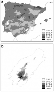 4. GIS Applications (2): Plant Conservation: This research paper focused on using GIS methods in order to implement plant restoration programs in Portugal. They focused on bryophytes and how they grew within a natural reserve with different species of vegetation, including alien species of plants, and varying levels of altitude. The researchers collected information from the reserve using aerial GIS mapping. it was found that the bryophytes all had differing levels of need within the reserve, with some doing well at altitude and others not. The alien species (invasives), also played a part, because they would grow quickly and outcompete the endangered bryophytes. GIS was helpful in finding these results, and is demonstrated in the map below. Source: https://www.sciencedirect.com/science/article/pii/S0006320703001253