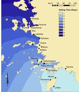 Historians are using GSI to understand better how battles unfold and why specific tactics were used, particularly when they occurred a couple of hundred years ago, when the terrain around them was destroyed by erosion or other Means. Well, GSI is also used to determine distance by looking at travel-related items from the ancient world shown in the first image. It shows how long a trip from Rhodes to many other parts of ancient Greece and the Mediterranean would have taken. Second image, they’re showing off the bombing of London from the German attacks, specifically during World War 2 of, where all the bombs were explicitly dropped on London.