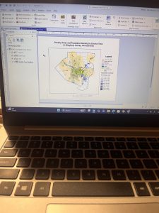 I Learned about a feature class, a raster dataset, a file geodatabase, and a project. I learned more about ArcGIS as a system and what the tutorials that we are doing are helping us understand and determine. For chapter 1 specifically, I worked with finished ArcGIS maps centered around Urgent care clinics in Allegheny, Pennsylvania with a total of 4 tutorials that I had to run through. Starting with tutorial 1, I learned how to do a myriad of skills including understanding what a book mark is, location the contents pane as well as what is means and includes, and learning how to save a project so that the information you started and worked with is collected on your device if needed for future use. I then learned how to add and remove a base map as well as the definition of what a base map is and how it is utilized in ArcGIS. I learned how to turn layers on and off through using the contents pane and subsections within that. In the first tutorial, I had a lot of issues exporting a map layout to my computer because I wasn’t using a desktop. This was my first time using a lot of these skills so a big part of my experience was trial and error as well as annoyance that I think was warranted, whether that be at my computer, the instructions, or honestly myself for choosing this course. A good outcome out of this is that because I figured out different skills and methods to doing things, I was in turn able to help others that were also confused on what to do or how to do something when it came to starting up the app or the assignments. I had issues opening up and using the 3D map on my computer after it had worked perfectly the first time so I had to do that work at a later time throughout the week in the GIS computer lab.
