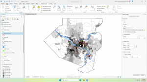 Learning the names of the different parts of the software has been a little difficult (i.e: pane, tab, group.) I’ve worked in Excel before, so I’ve used similarly laid out software, but I didn’t know what each sub-group was called. These tutorials are very rewarding since they give enough information to gently guide you through each step the first time, and then give less instruction so that you can internalize it and puzzle pieces out if you forget where something is. It’s very satisfying to see things work how they’re supposed to. The visibility range for labels has been the most fascinating tool for me. I like how simple, yet useful it is. Chapter 3 was interesting because I recently saw a dashboard that must have been built the same way, and it was interesting to see it in action. It isn’t something I would have recognized before. Typing more on the PCs was also neat because I have worked almost entirely on laptops in the past, meaning the keyboard was kind of foreign to me; I’m used to flatter keys. I’m not sure why my screenshots are so blurry; they look fine on my computer, so maybe it’s something to do with WordPress.
