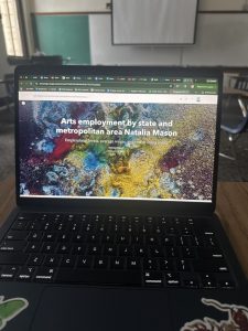 The third chapter delved deeper into the presentation aspect of the data, and how to do things such as format a layout to present information on a paper-like sample. I fear this was also one of the more difficult chapters thus far, as the tasks were less straightforward than those of mapping. I also found it interesting that it had also covered the aspect of creating storymaps to share with viewers. A story map is a type of online webpage that a user can post online to share map data and other topics of their choosing. One question I had when making the story map was where the catalog pane was, as within this chapter, I feel as though they were not as clear about that,t and I ended up having to look up how to find it. It also had me make a dashboard, which is another online visualization of map information, where it taught me how to create tables, pie charts, and bar charts. I found it quite interesting that I could edit so much of the map on the published online version, especially since it comes from such a large platform that a laptop typically can’t handle. The tutorial itself was mainly centered around Arts employment and cost of living wages throughout the U.S, and the clear way the data was presented made it intriguing to learn about.