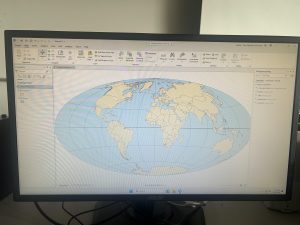 Chapter 5 was about spatial data, and I was able to change the geographic coordinate system to a projected coordinate system by setting the map properites, change the projected coodinate system to a different projected coordinate system by setting the map properites, and set the projected coordinate system for a local-level map by adding a first layer to the map an d specifying the display untis for the map. In 5-1 I learned more about world map projections. I discovered that geographic coordinate systems use latitude and longitude coordinates for locations on the surface of the earth, whereas projected coordinate systems use a mathematical transofmration from an ellipsoid or a sphere to a flat surface and two-dimensional coordinates. This section was very inetesting to learn about the various types of map projections- such as the Hammer-Aitoff projection.