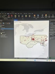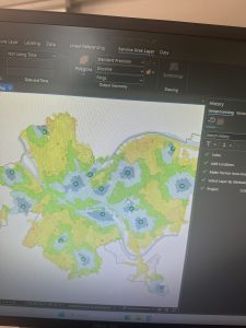 A large aspect of Chapter 9 was to create different types of buffers around different data points on the map. It walked me through how to change the radius of the buffer and what tool to use to create a buffer, which were the pairwise buffer and the multiple ring buffer. The pairwise buffer tool creates a standard radius around the data point, while the multiple ring buffer can create a greater number of buffers, and also provides the option of making them overlap. A lot more was done in the analysis tab within this chapter as well. One of the features from the analysis tab is the service area option, which can change the visual attributes of the data measured within the map. I personally thought that was a cool feature to introduce, and it was interesting to see how different layers of data can be shown in that way. It was also a good way to show how the data can change depending on the distance from a particular point. Another important topic covered within the chapter was the visualization of data in the sense of creating different types of representations, such as tables and dot plots. It felt very appropriate to finish the tutorials off with some additional support in creating tables and such.