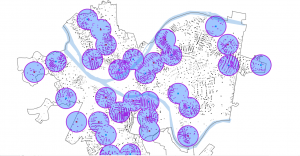 Chapter 9 is kind of like Chapter 7 in that the tutorials didn’t feel as hard, but there were many of them to do in tutorial one of chapter 9, we were trying to find the pools in the area of Pittsburgh, which was really interesting because at first we had a plug-in we were looking for pools directly and then we put them all into .5 of a mile which the map shows us and these giant blue circles, which areas in a .5 mile each other have a pool and some of these areas overlap with each other but certain areas have a pool to them in tutorial too we do almost the exact thing is tutorial one but instead of .5 a mile we switch it to a mile. This gives us another set of circles inside the larger circle we made in the first example. This adds an additional buffering ring to our original circle. in tutorial three of chapter 9 instead of having the circles it’s this time we have the map of Pittsburgh and each pool is labeled with its big dot and where it relates to all the other pools and we can kind of see any more colorful pattern, where each pool is compared to the other one in distance darker the color it has meaning it is the pool and the lighter color it is is how far it is away from a pool. It has to calculate the average of a pool of values that are not adjacent to each other. In Example 5 of Chapter 9, we did a data clustering analysis. We collected data from specific areas in the city of Pittsburgh on crimes committed by age and on how likely people were to commit those crimes in those areas.
