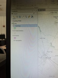 I put the Hydrology layer on top of the Parcel and StreetCenterline so I could actually see it. The Add Data feature was very helpful in this, and I have attached my map and an image of my catalog pane.