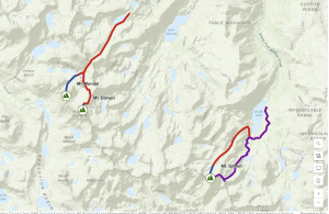 I then completed the ArcGIS Online Basics course. The map below is the map that I created from data provided to me by the ArcGIS Online program. I changed the basemap to topography to show the Sierra Nevada Alpine climbing routes. I learned that there are different methods of sharing work done on ArcGIS Online, like sharing to a group, an organization, or keeping content private between you and your administrator. I was also introduced to interactive legends in this training that I did not previously know about from GEOG291.