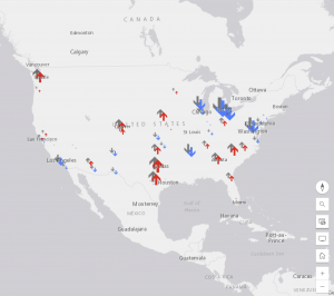 - Then, I added a side car that allowed me to display a 3D web scene of the population changes. Afte that, I added arrows to show movement relationships between states, specifically between California and Texas, and New York and North Carolina. This part kind of felt not related to the rest of the content, but it was good to learn, nonetheless.