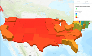 In chapter 7 I learned how to create 3D layers. I created a 3D map of the United States showing population density in each state.