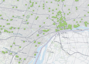 For my second app I decided to use ideas from Chapter 7 to create a 3D map detailing the locations of subsidized housing in the county I live in (Wayne County Michigan). The 3D pattern clearly shows the distribution and density of the housing, and how densely packed the housing is in the city of Detroit compared to other cities in my county, including my city Taylor.