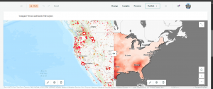 This is an unfinished thing I was doing and for the sake of time I moved on. I wanted to include it here because I did spend time on it but I did run into some issues with ArcGIS Online and the vector and raster tile layers. In the screen shot of ArcGIS Online, this is when I ran into issues and so I just started experimenting. I used layers for Living Atlas to do something similar in showing wildfire point data which is vector data and then drought intensity data which is raster data. The clear pattern that is confirmed by the map is that there are more wildfires where drought intensity is higher. Although droughts may not directly cause wildfires, they contribute to the conditions that create the risk and intensity of wildfires.Â