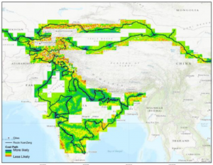 This paper uses ArcGIS and the biography of Buddhist pilgrim XuanZang to map the locations of many city states and monasteries and uses topographical information to see what routes he likely took between them based on what would require the least amount of climbing mountains or particularly rough terrain.
