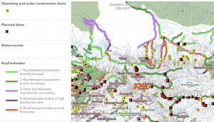 Application 2: You can use ArcGIS to designate different types of habitats by importance to their surrounding ecosystem. For example, the map “Key Freshwater Habitats in the Mountain Region of Central Asia” by Evgeny Egidarev. This map depicts key freshwater bodies of water deemed important for the survival of endangered fish endemic to Central Asia. These bodies were identified during a more than two-year-long research project. Link: https://www.arcgis.com/home/item.html?id=cadb59d8d14d43919230947a2cfaa91a