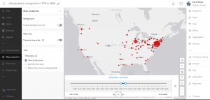 For the chapter 5 tutorial, I was shown how to connect ArcGIS Pro to portals but I was already connected so I skipped this preliminary part. I learned how to publish vector tile and raster tile layers. Lastly, I made a comparison web app to compare the vector and raster tile layers. The focus involved data and a map of the major earthquakes and hurricanes in the United States between the years of 2000 and 2008. The end product was a nice ArcGIS Story that utilized the swipe content block and a side-by-side app. This tutorial was brief. For the chapter 6 tutorial, there were basically two sections, each had a case study associated. In sections 6.1 to 6.4, I created a dashboard app that shows continuous data feeds and photos in near real time. The focus was the city of Redlands, California, and the goal was to assist in response efforts for the city’s local law enforcement/emergency response. The data was provided as web layers for this. I also used Arcade-based formatting here. The end result was super cool and had six total components, an interactive map, a gauge, a table, a list, a pie chart, and a bar chart. For the text part of the tutorial, in sections 6.5 and 6.6, I developed a time-enabled feature layer and a web app that had time animation. The goal of the animation was to display the spatial and temporal patterns simultaneously of US population change over the last 200 years. — I’ve integrated screenshots of my work above. — Both tutorials went smoothly for the most part with some hiccups here and there but I bumped along through it like turbulence.Â