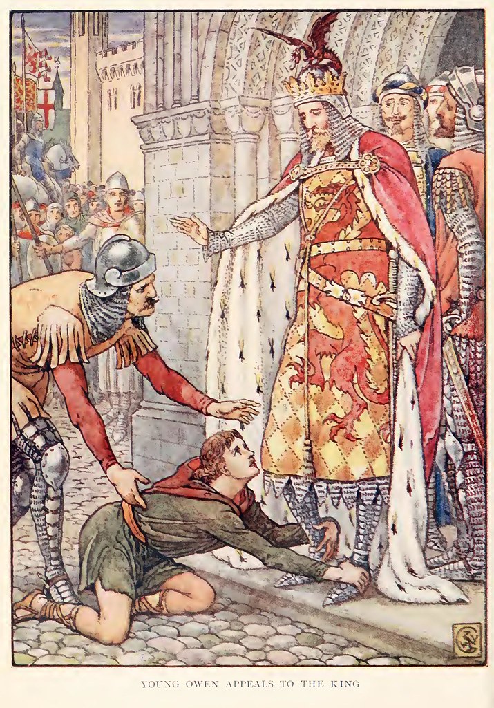Young Owen Appeals to the King by Walter Crane, 1911. This work is in the public domain.